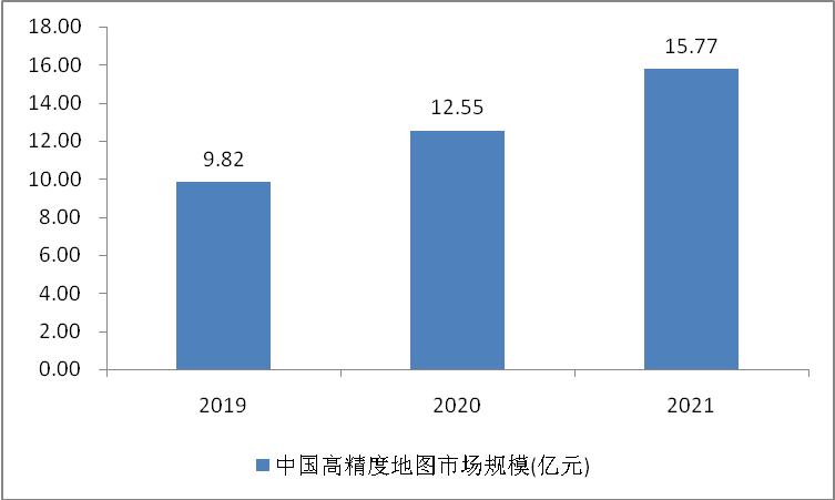 根據汽車銷量、高精度地圖滲透率、license費用等數據測算,2021年,我國高精度地圖的市場規模約為15.77億元(未包含數據更新的服務費用,下同)。2019和2020年的市場規模分別為9.82億元和12.55億元。