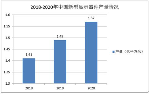 2020年,國內新型顯示器件的產量約為1.57億平方米,較2019年上漲了5.37%。行業供給能力逐漸增強。