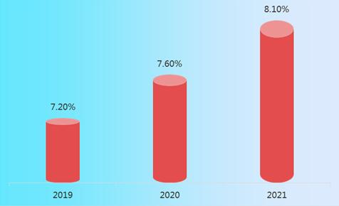 2019-2021年全釩液流電池行業(yè)產(chǎn)值利稅率由7.2%上升到8.1%。