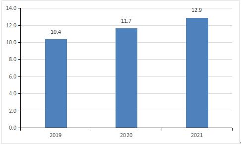 2021年,我國建筑施工業增加值8.0萬億元,較2020年同比增長9.78%,市場規模占國內生產總值的7.0%。