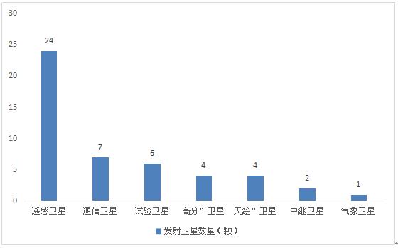 從衛星發射情況來看,我國進行了55次火箭發射,其中搭載并發射了48顆衛星。發射次數和發射衛星數量最多的是遙感衛星,其次是通信衛星,共進行了7次發射,均采用“一箭一星”的發生,發射了7顆上天。