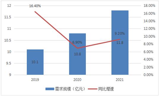 近些年來,我國民營兒科醫院服務在入院人次及客戶單價方面呈現出雙向齊升的局面,2019年我國民營兒科醫院需求規模為10.1億元,行業發展至2021年,需求規模增長至為11.8億元,較2020年增長了11.8%。