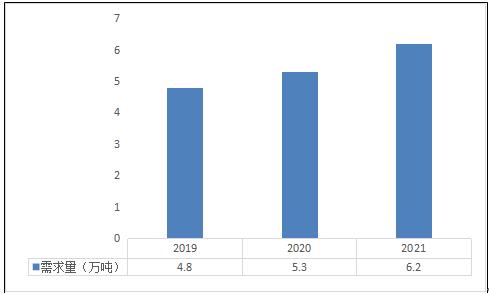 圖表:2019-2021年國內高溫合金需求量(單位:萬噸)