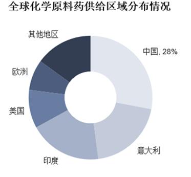 圖表:全球化學(xué)原料藥供給區(qū)域分布情況