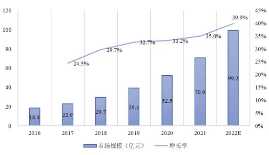 圖表:2016-2022年中國數據安全市場規模及增速情況