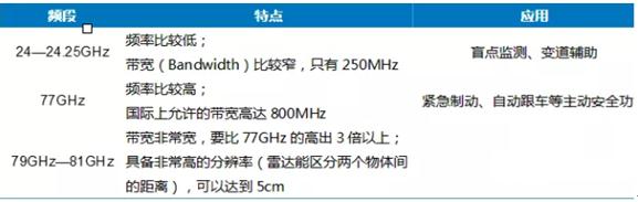 目前各個國家對車載毫米波雷達分配的頻段各有不同,但主要集中在 24GHz 和 77GHz,少數國家(如日本)采用 60GHz 頻段。由于 77G 相對于 24G 的諸多優勢,未來全球車載毫米波雷達的頻段會趨同于 77GHz 頻段(76-81GHz)。