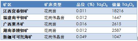 我國鉭資源儲量及分布情況: