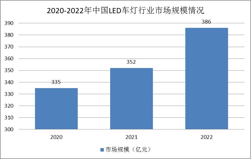 圖表:2020-2022年中國LED車燈行業(yè)市場規(guī)模情況
