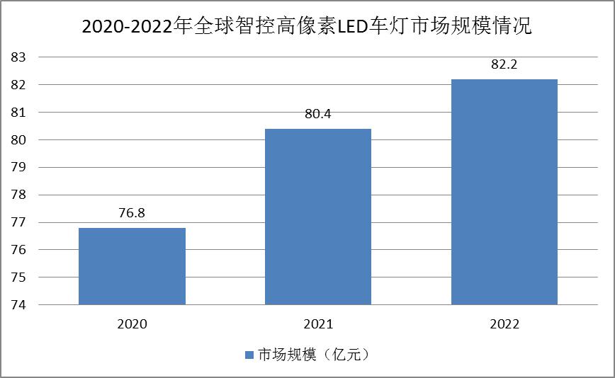 圖表:2020-2022年全球智控高像素LED車燈市場規(guī)模情況