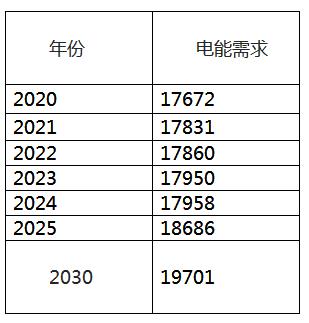表1:電能需求預期(單位:兆瓦時)