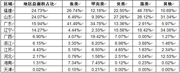 但值得注意的是海南和天津兩地的養殖中,貝類都不是主角。在海南,魚類和甲殼類都是主要養殖品種。