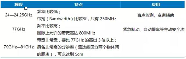 圖表:不同頻率車載毫米波雷達對比