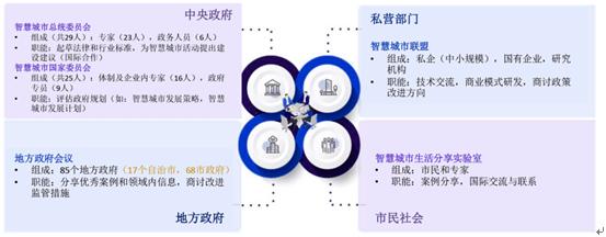 為了鼓勵第四次工業革命技術的相關企業將智慧城市作為發展方向,政府創新設計了一個包含各部門、地方政府、企業和市民的多方管理機制。特別是韓國正在擴大智慧城市融合聯盟的規模,從而增強私有企業建設智慧城市的參與度,此外,韓國計劃推出“智慧城市生活實驗室”來積累實驗室資源并創造協同效應。