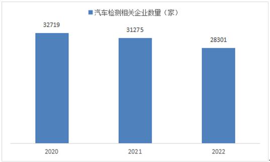 圖表:2020-2022年中國汽車檢測相關(guān)企業(yè)數(shù)量情況