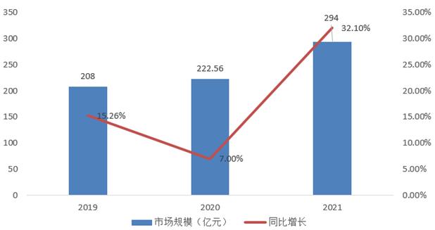 圖表:2019-2021年中國載人飛行器行業市場規模