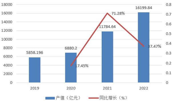 據(jù)測算,2022年牛奶行業(yè)產(chǎn)值達(dá)16199.84億元,同比增長37.47%。