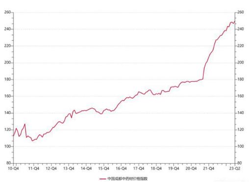 圖表:2010 年以來成都中藥材價(jià)格指數(shù)走勢