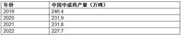 根據(jù)相關(guān)數(shù)據(jù),2020-2022年我國中成藥材產(chǎn)量情況如下表所示: