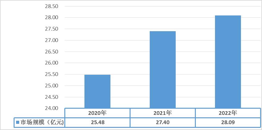 在輕骨料混凝土應用領域不斷增長的驅動下,2020-2022年中國輕骨料混凝土行業市場規模呈現逐年增長趨勢,2022年下游行業發展緩慢,輕骨料混凝土市場規模達28.09億元,同比增長2.5%。