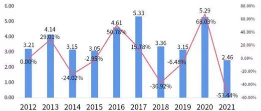 圖表:近十年豬養殖相關企業注冊量&增速(單位:萬家)