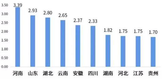 企查查數據顯示,從區域分布來看,河南以3.39萬家豬養殖相關企業排名第一。山東、湖北分別有2.93萬家、2.80萬家豬養殖相關企業,排名前三。此后依次為云南、安徽、四川等。