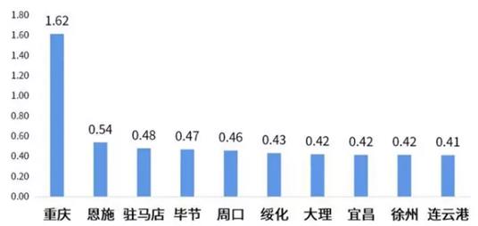企查查數據顯示,從城市分布來看,重慶以1.62萬家豬養殖相關企業排名第一。恩施、駐馬店分別有豬養殖相關企業0.54萬家、0.48萬家,位居前三。此后依次為畢節、周口、綏化等城市。