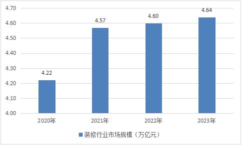 圖表:2020-2023年裝修市場規(guī)模(萬億元)