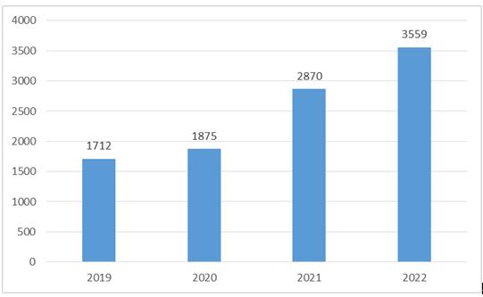 圖表:2019-2022年中國新能源汽車零部件行業市場規模(單位:億元)