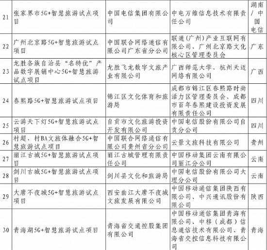第一批“5G+智慧旅游”應用試點項目公示
