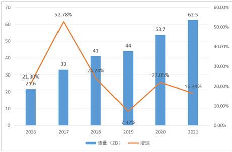 隨著物聯網、電子商務、社會化網絡的快速發展,全球大數據儲量迅猛增長,成為大數據產業發展的基礎。據統計,2021年全球大數據儲量達到53.7ZB,同比增長22%。