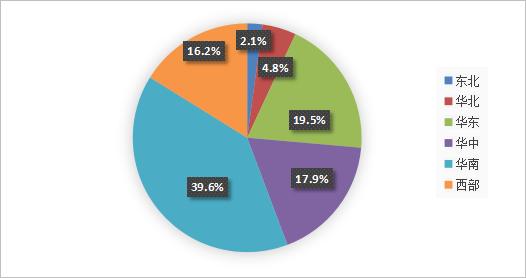 圖表:截止2023年11月精油行業企業區域結構分布圖