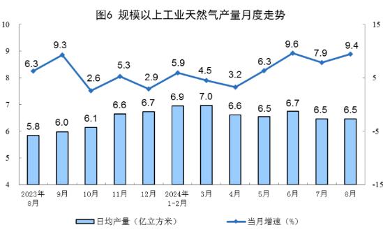 8月份,規(guī)模以上工業(yè)(以下簡稱規(guī)上工業(yè))天然氣生產(chǎn)平穩(wěn)增長。