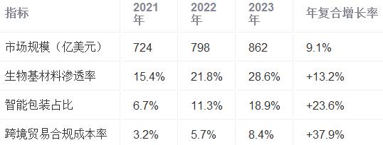 ?表1 2021-2023年全球化妝品包裝市場核心指標(biāo)?