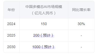近年來,中國多模態AI行業市場規模持續擴大,呈現出爆發式增長態勢。據中研普華《2025-2030年中國多模態AI行業市場深度調研與發展趨勢報告》顯示,2024年中國多模態AI市場規模已達到約150億元人民幣,同比增長約30%。預計未來幾年,隨著技術的不斷成熟與應用場景的拓展,中國多模態AI市場將繼續保持高速增長態勢。到2025年,市場規模有望突破200億元人民幣大關,到2030年更是有望達到千億元級別。