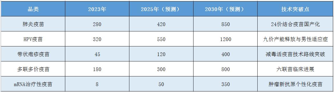 ?表1:2025-2030年中國疫苗細分市場增長預測(單位:億元)?