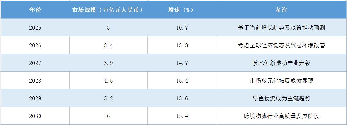 表1:2025-2030年中國跨境物流行業市場規模預測