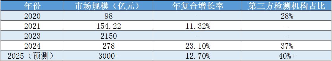 從上述表格數據可以看出,中國食品檢驗行業市場規模持續擴大,年復合增長率保持較高水平。同時,第三方檢測機構的占比也在不斷提升,成為市場的主導力量。這反映了行業發展的良好態勢和巨大潛力。