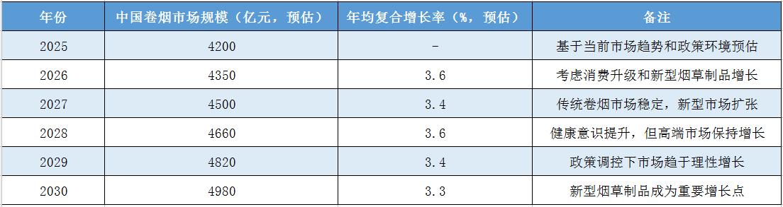 根據(jù)中研普華產(chǎn)業(yè)研究院《2025-2030年中國卷煙行業(yè)深度調(diào)研與未來發(fā)展機遇分析報告》預(yù)測,未來五年中國卷煙市場規(guī)模將保持穩(wěn)定增長態(tài)勢。其中,傳統(tǒng)卷煙市場雖然面臨壓力,但憑借其龐大的消費群體和穩(wěn)定的消費需求,仍將占據(jù)市場的主導(dǎo)地位。而新型煙草制品市場則將以更快的速度增長,成為推動行業(yè)發(fā)展的重要力量。
