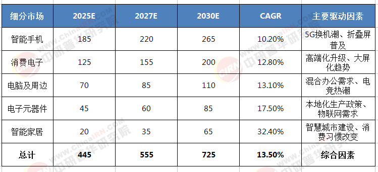 智能手機增速放緩至 8 - 10%,但折疊屏和游戲手機仍保持 25%以上增長。消費電子進入品質升級期,8K 電視和沉浸式音響系統年復合增長率將達 20%。智能家居設備則有望維持 30%以上的高速增長。