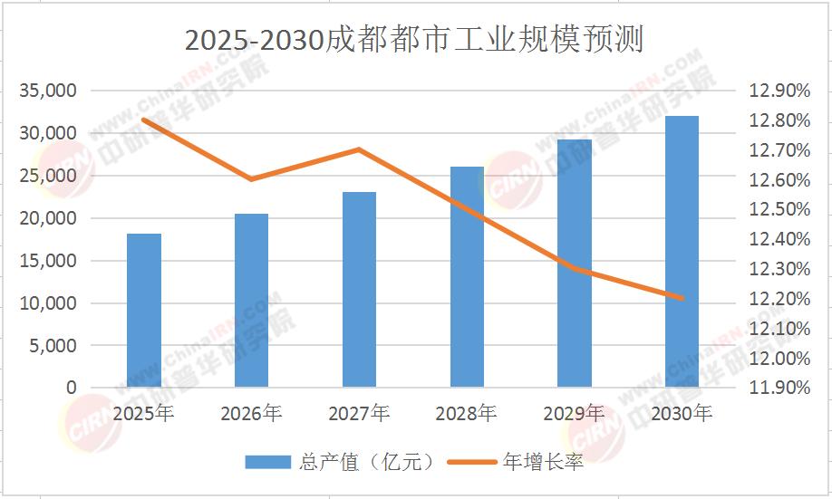 根據中研普華產業研究院發布的《成都都市工業 “十五五”發展趨勢預測研究報告》顯示,2025年成都都市工業總產值將達1.82萬億元,2030年沖刺3.2萬億元,年均增速保持12.8%。其中,電子信息產業規模將突破8000億元,形成“芯片-終端-應用”全產業鏈閉環;航空航天裝備產值達1500億元,國產大飛機C919機頭交付量占全國65%。
