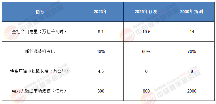 表1:2023—2030年中國電力網絡產業關鍵數據