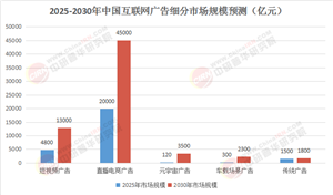 表1:2025-2030年中國數字網絡運營細分市場規模預測(億元)