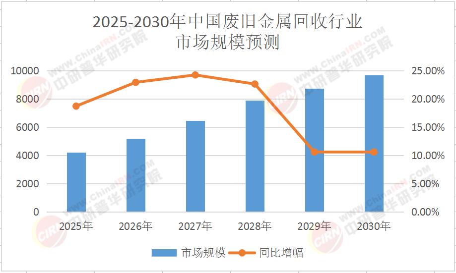 中研普華《2025-2030年中國廢舊金屬回收行業(yè)發(fā)展趨勢及投資策略研究報告》預測,2030年國內廢舊金屬供給量將較2025年增長2.1倍,但有效回收率仍不足50%。