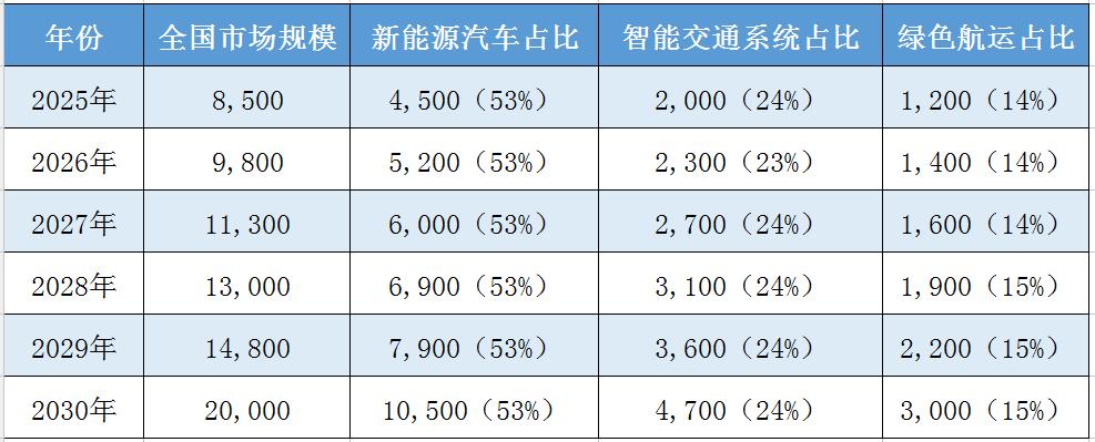 表1 2025-2030年中國交通節能減排市場規模預測(單位:億元)