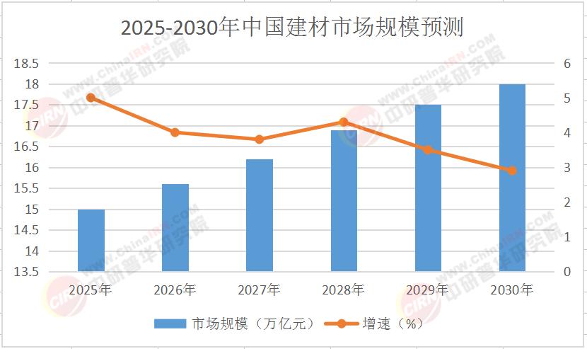 根據(jù)中研普華產(chǎn)業(yè)研究院《2025-2030年建材市場(chǎng)發(fā)展現(xiàn)狀調(diào)查及供需格局分析預(yù)測(cè)報(bào)告》預(yù)測(cè),2025年中國(guó)建材市場(chǎng)規(guī)模預(yù)計(jì)將突破15萬(wàn)億元,但增速將放緩至5%以下。展望未來(lái),到2030年,中國(guó)建材市場(chǎng)規(guī)模有望達(dá)到18萬(wàn)億元,形成以綠色建材、智能建材、循環(huán)經(jīng)濟(jì)建材為核心的新格局。以下是一個(gè)簡(jiǎn)化的市場(chǎng)規(guī)模預(yù)測(cè)表格,展示了未來(lái)幾年中國(guó)建材市場(chǎng)的增長(zhǎng)趨勢(shì):