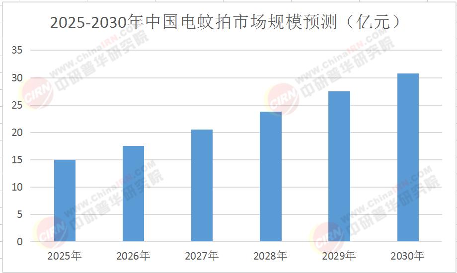 2025年,中國電蚊拍行業呈現“量價齊升”態勢。一方面,夏季高溫與城市化進程加速蚊蟲繁殖,驅動基礎需求增長;另一方面,智能電蚊拍均價提升至傳統產品的2倍以上,推動市場規模結構性擴容。根據中研普華《2025-2030年中國電蚊拍行業市場全景調研及投資價值評估研究報告》預測,2025-2030年行業復合增長率將達14%,至2030年市場規模有望突破30億元。