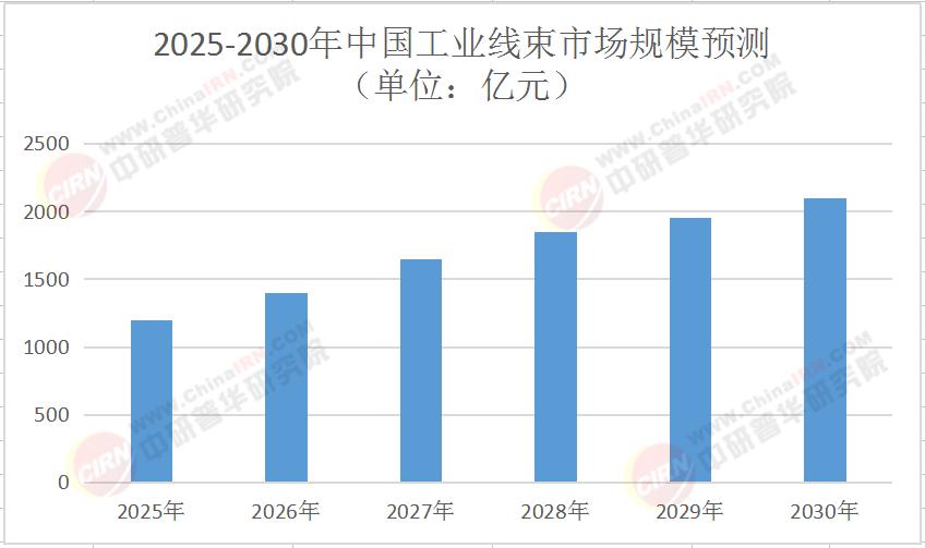 2025-2030年中國工業線束市場規模預測(單位:億元)