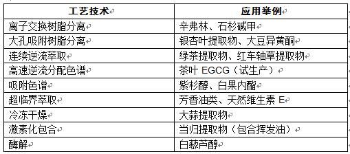 工業萃取技術。包括:(1)有機溶劑萃取技術;(2)二氧化碳超臨界流體萃取技術,它是90年代問世的工藝,是利用高壓下(350-500bar)的液態CO2萃取植物有效成分,所得產品純度高、收率高,萃取劑又無污染。但因工作壓力大,其設備要求高,目前只做到中試水平;(3)新型氯氟碳溶劑萃取,如英國最近發明的“Klea”(HFC134α,1,1,1,2四氟己烷)惰性溶劑,可以在低壓室溫下萃取,節省能源,又避免熱破壞。