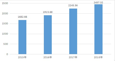 圖表:2015-2018年中國健康保健食品行業市場規模(億元)
