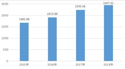 圖表:2015-2018年中國健康保健食品行業資產規模(億元)